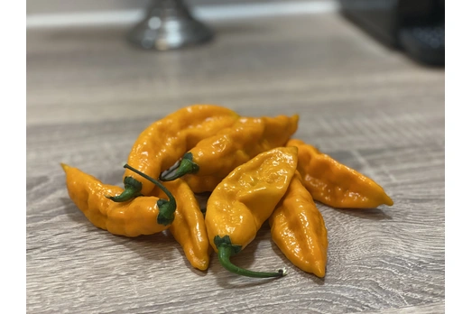 Naga Jolokia (ookwel bekend als Bhut Jolokia of Ghost Pepper) is één van de heetste peper soorten. De wasachtige schil is licht oranje en gerimpeld. Deze kleine, maar extreem hete peper scoort een 10 uit 10 op het gebied van heetheid.