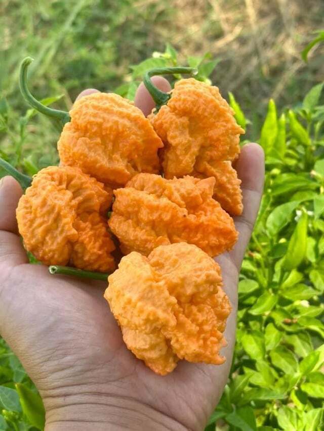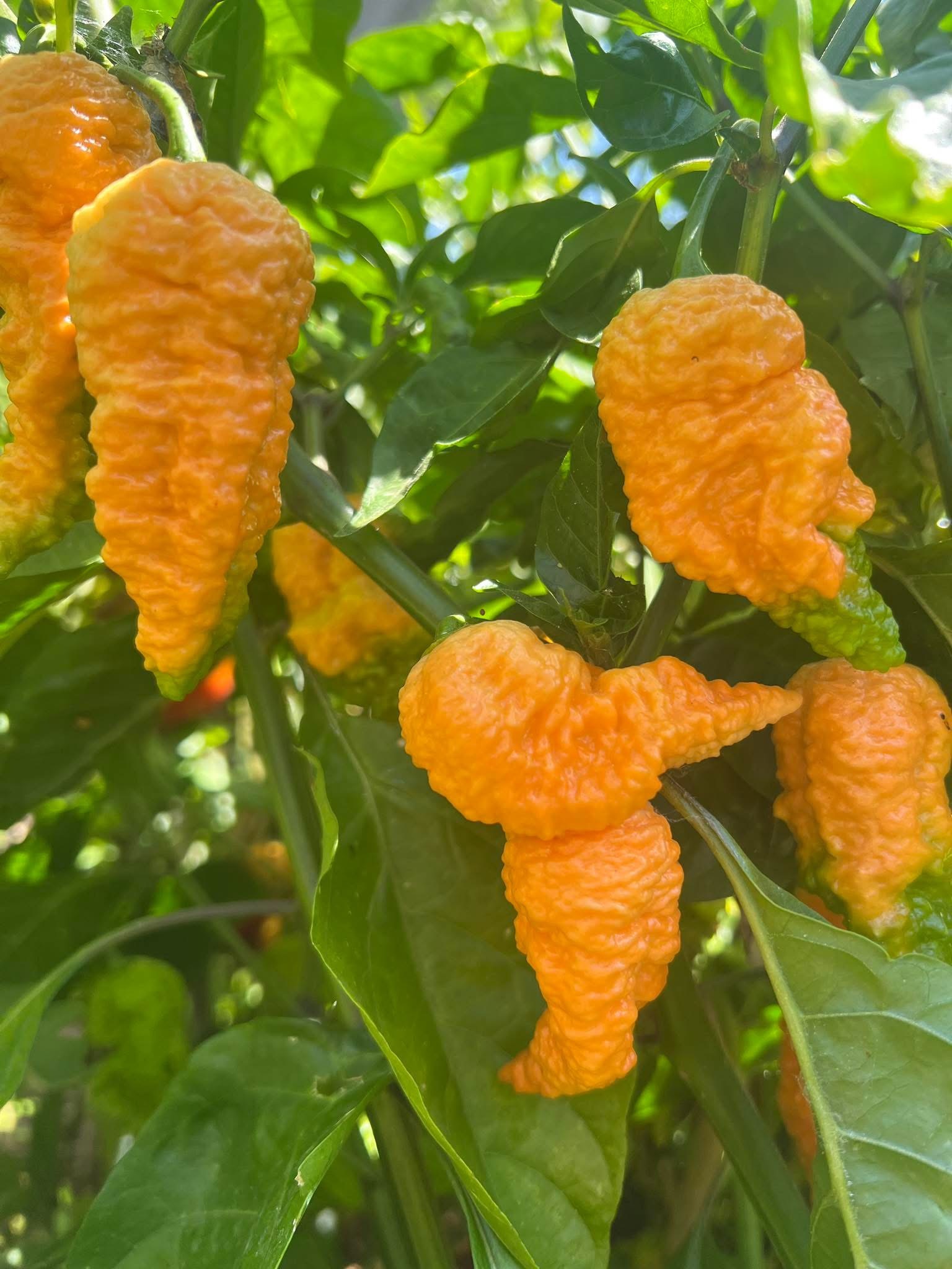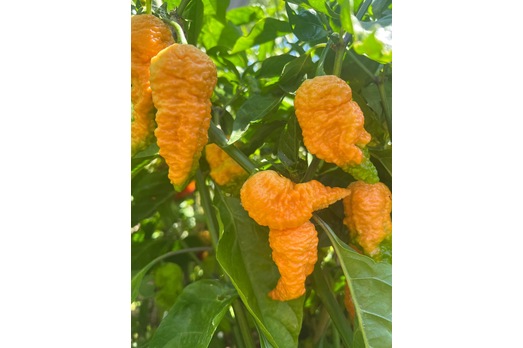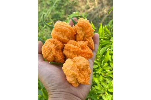 De Fried Chicken Pepper is een opvallende verschijning. Zijn naam heeft hij te danken aan zijn uiterlijk: de gerimpelde, goudbruine vruchten lijken sprekend op knapperige gefrituurde kip. Het is een zeldzame en bijzondere peper die meteen nieuwsgierigheid wekt.